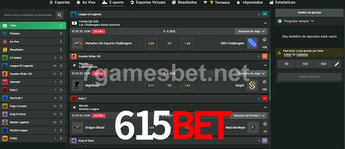 A aposta 615Bet oferece aos jogadores a experiência mais conveniente de apostas em eSports!